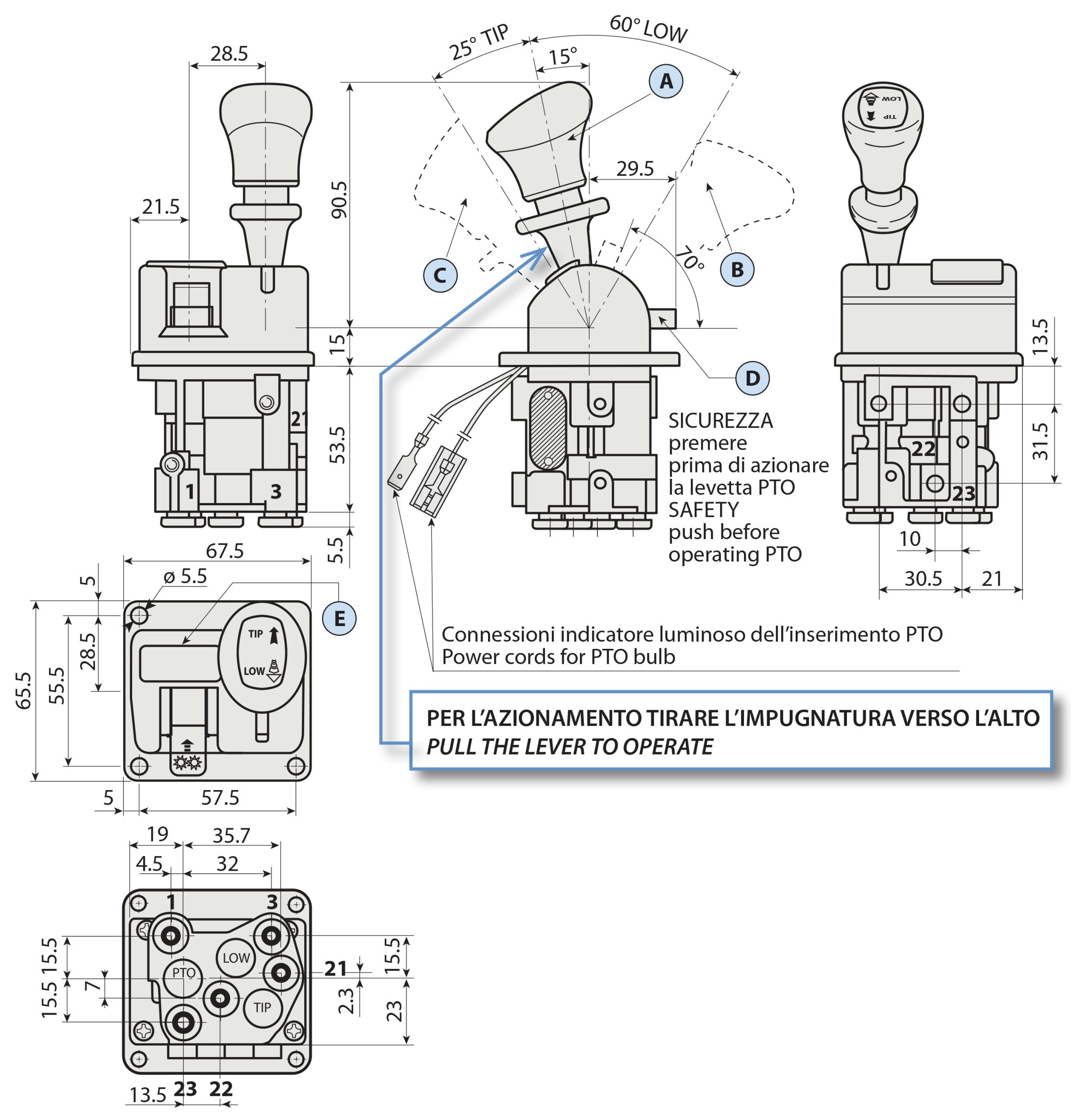 Az IPH billenésvezérlő kar légkapcsolóval egy pneumatikus vezérlőegység, amelyet a teherautók hidraulikus rendszereiben a billenő funkciók pontos és biztonságos működtetésére terveztek. Lehetővé teszi a teljesítményleadó (PTO) egyszerű be- és kikapcsolását, valamint a billenőplatform emelésének és süllyesztésének precíz irányítását, ezáltal növelve a hatékonyságot és az üzembiztonságot.