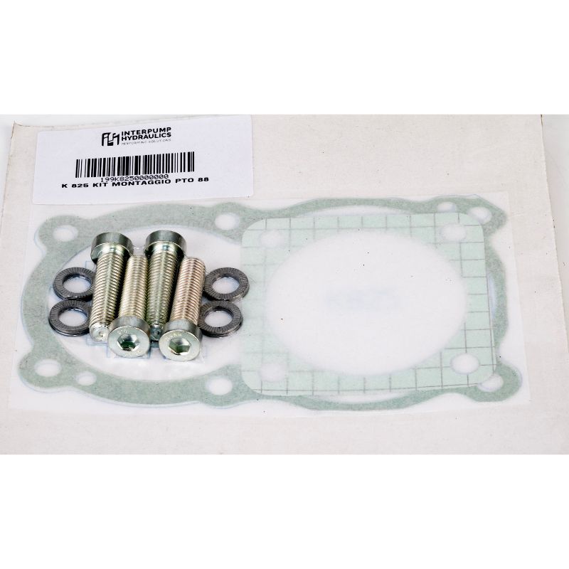 The Interpump Hydraulics K825 mounting kit is engineered for installing PTO units on ZF P88 gearboxes. The kit includes high-strength mounting bolts, serrated safety washers, and a precision-cut gasket, ensuring a vibration-resistant, leak-free and durable assembly.