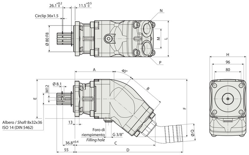 Max. speed (P ≤ 20 bar): 2000 rpm