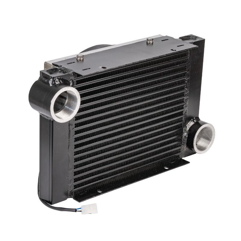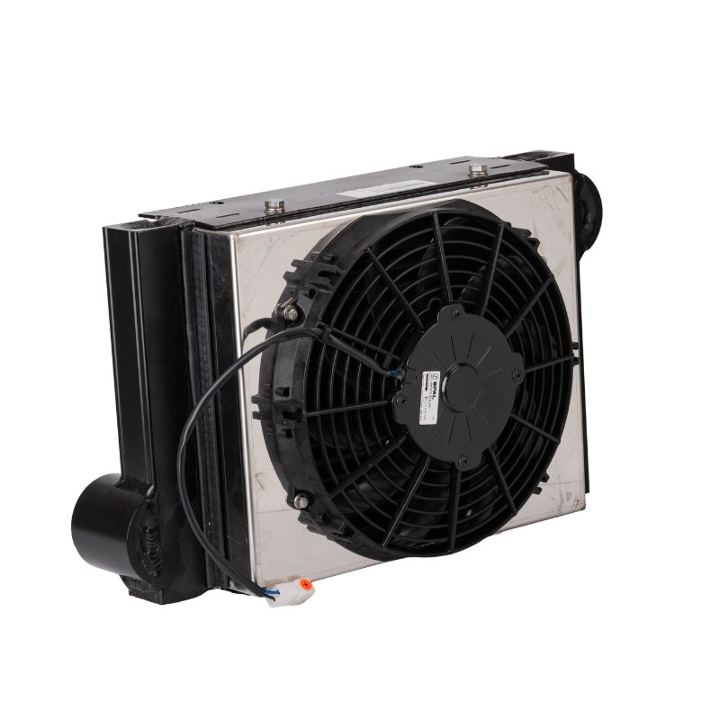 The unit consists of a robust finned heat exchanger with integrated fan, optimised for continuous operation in mobile and industrial applications. Lowering the air temperature helps to protect hoses, valves and filters, reduces thermal stress on the installation and contributes to safer, more stable operating conditions during product loading and unloading.