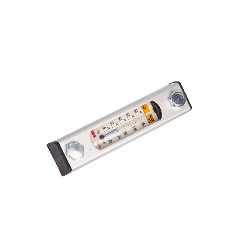 The aluminium body ensures excellent corrosion resistance and long service life, even in harsh working environments. The integrated thermometer features a clear, dual-scale display (°C and °F), allowing easy reading from multiple angles.
